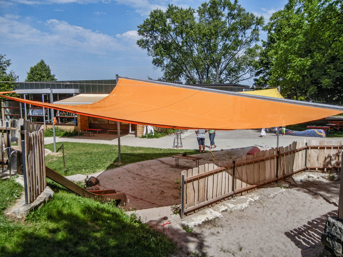Unsere Mini-Vario Sonnensegel können eingerollt sogar draußen überwintern und sind in vielen Farben und Mustern erhältlich.